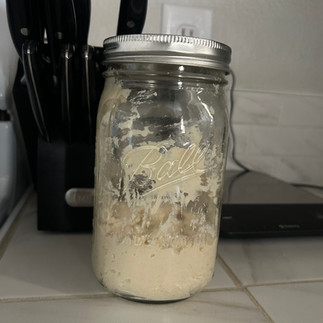 Tip: Make sure to only set the lid on your starter after a feed. If the jar is sealed the pressure can build too much and explode the jar.